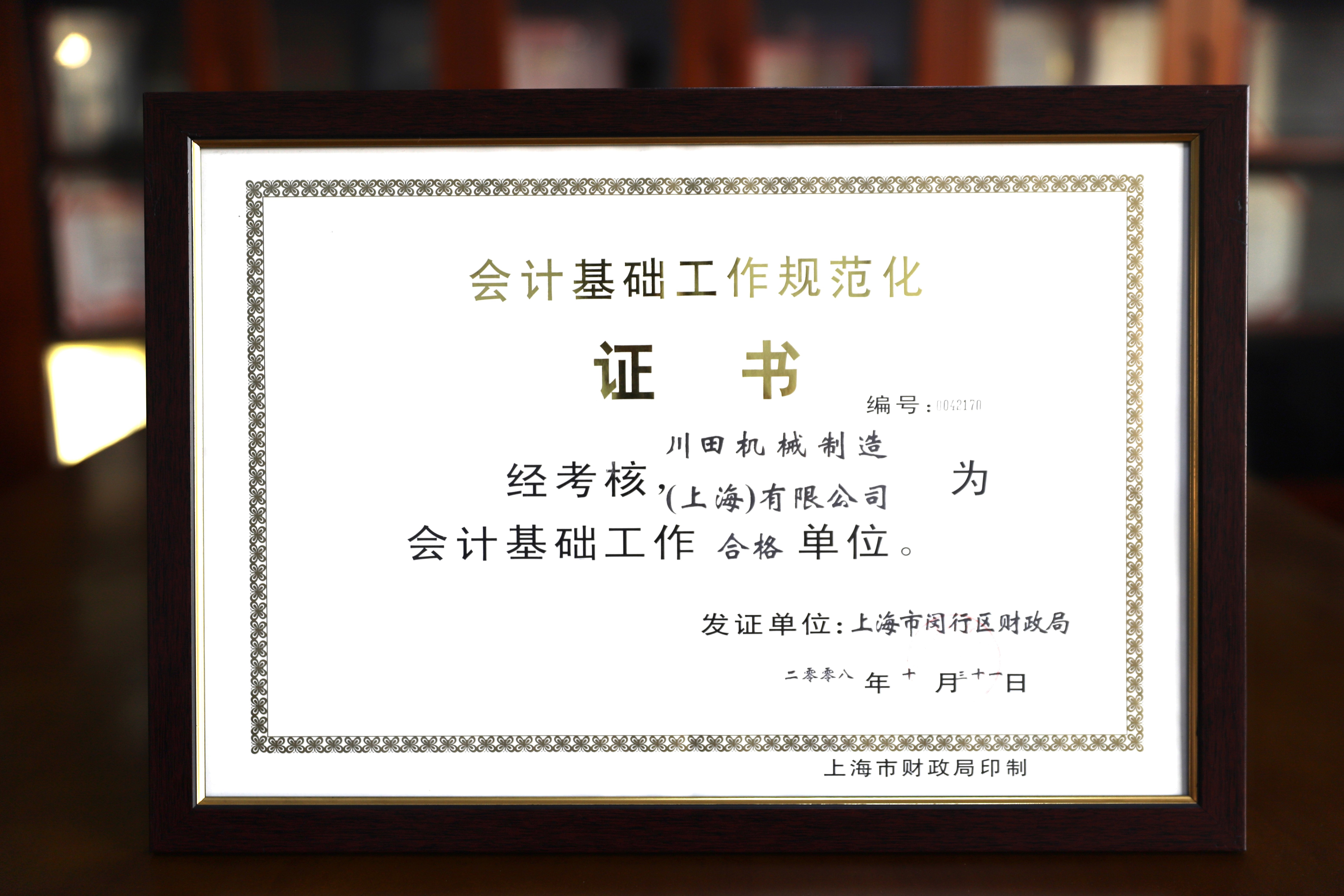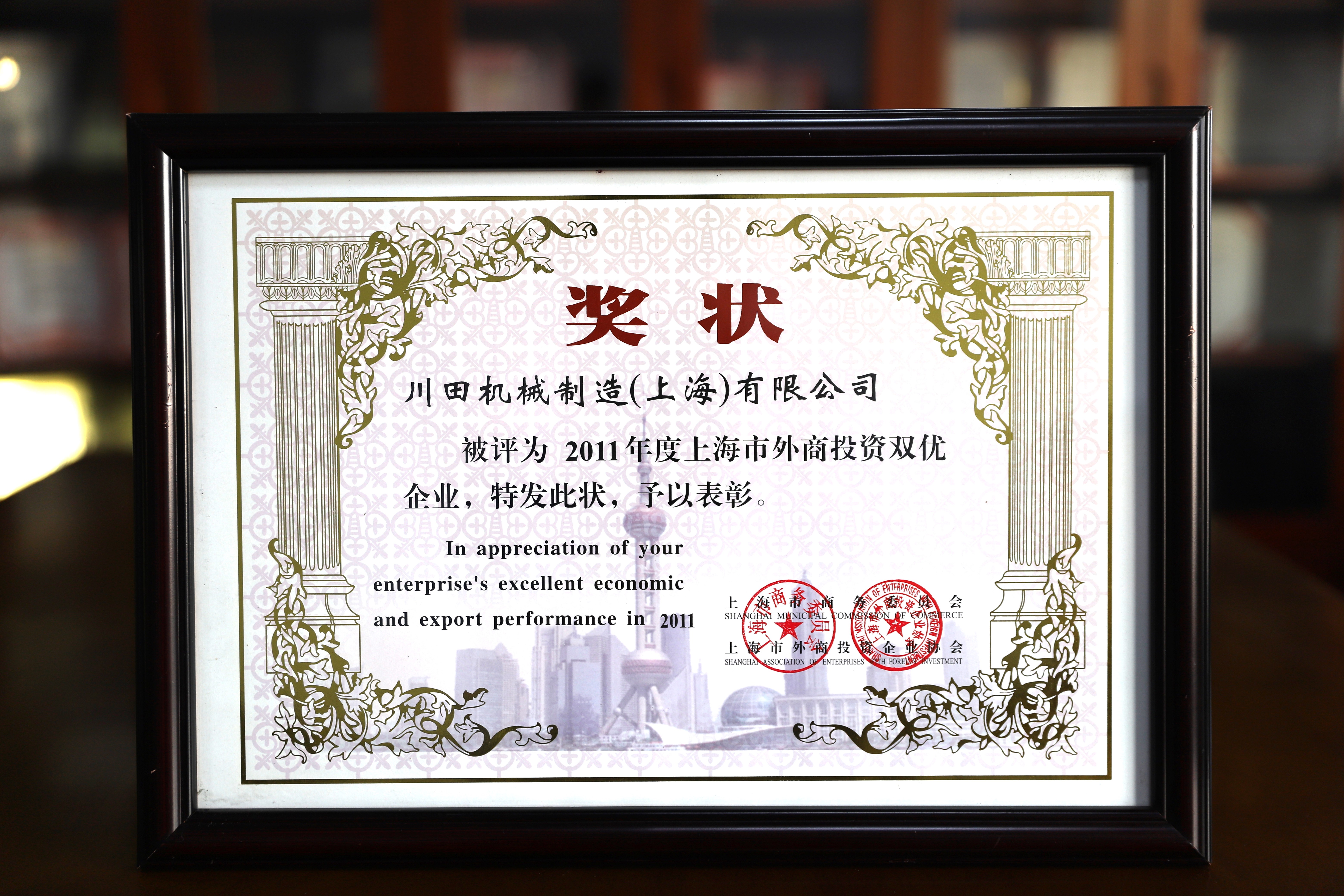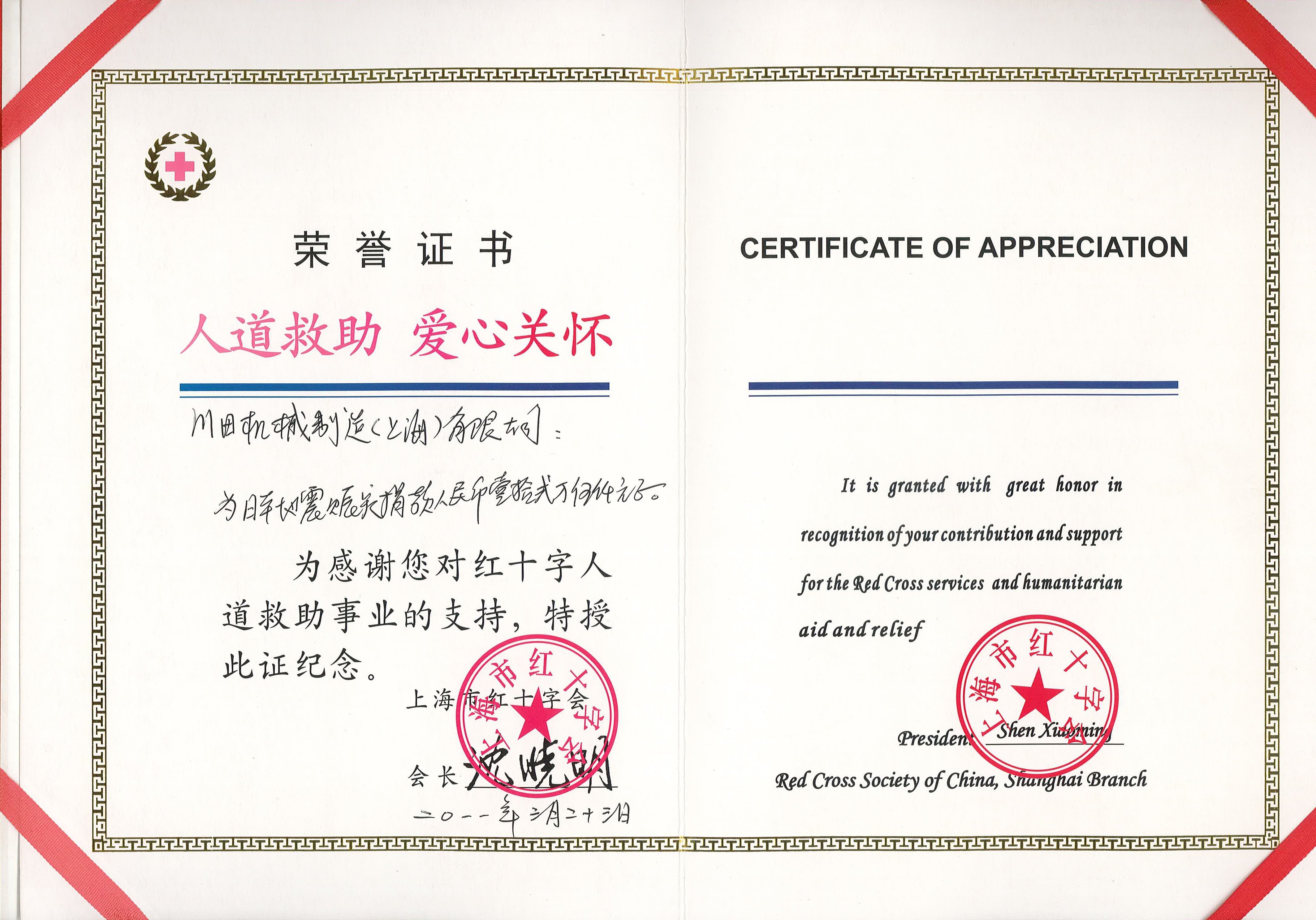 2011 上海市紅十字會(huì)榮譽(yù)證書(shū) 川田機(jī)械