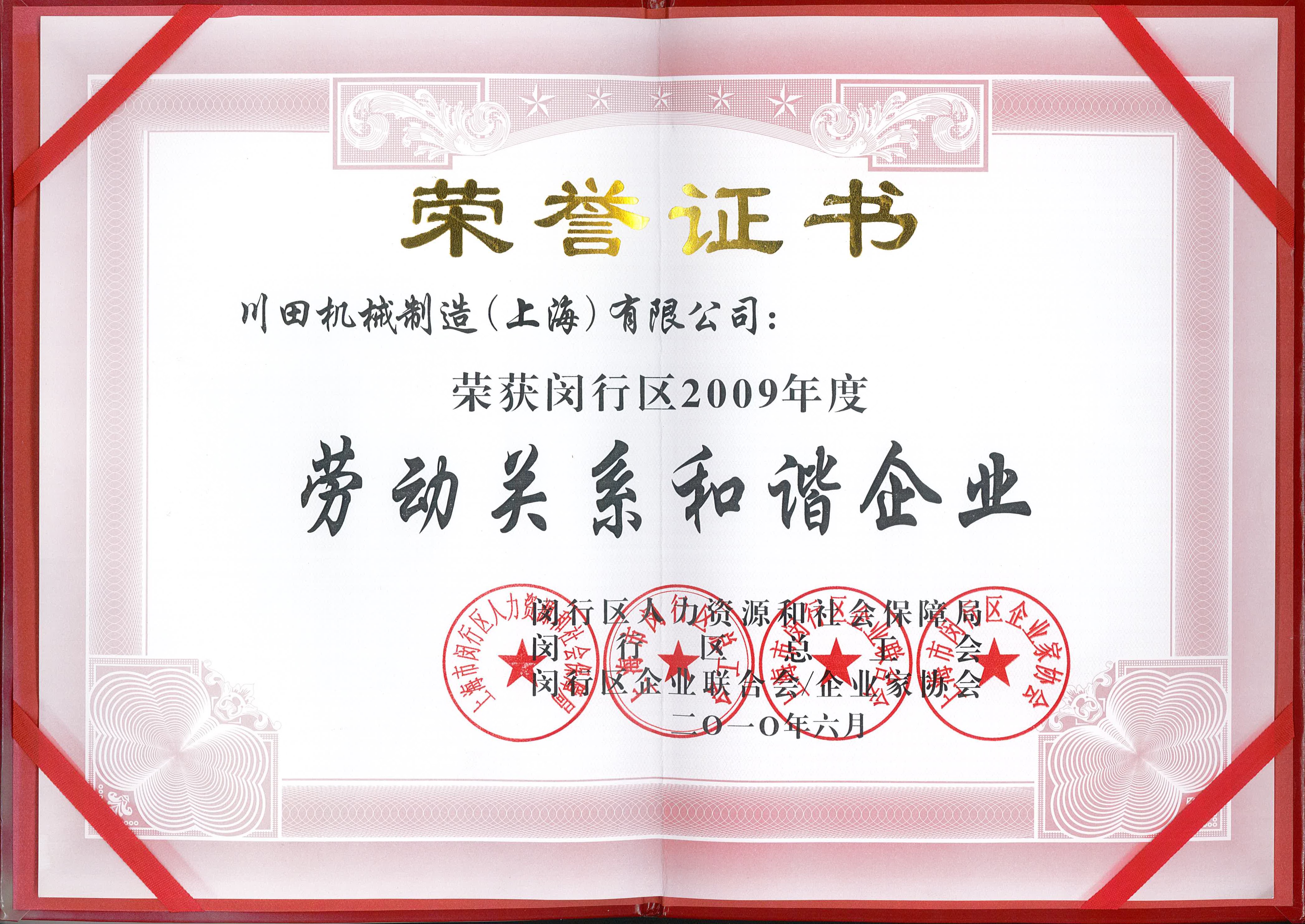 2009 閔行區(qū)勞動(dòng)關(guān)系和諧企業(yè)-1